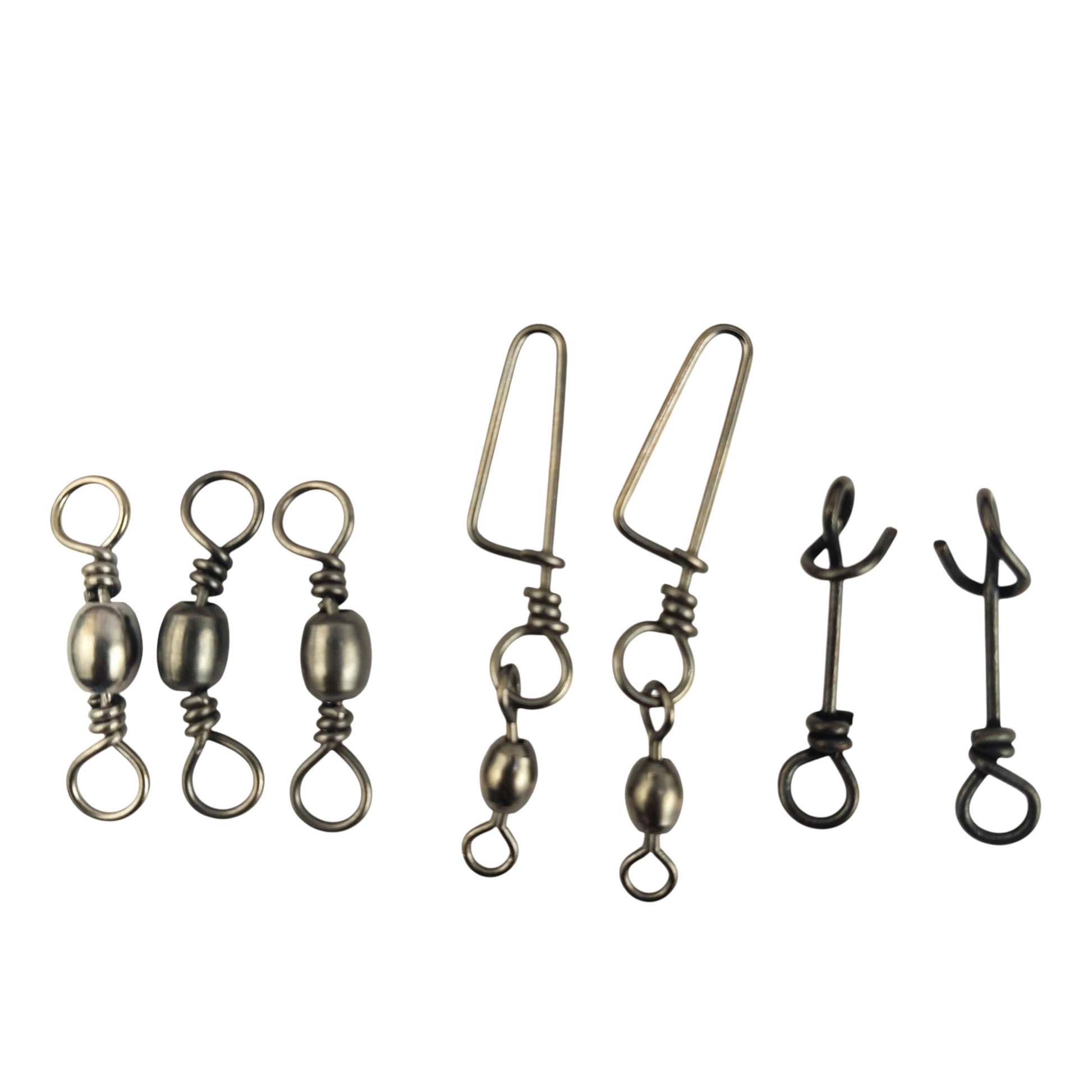 5) 6 pcs each fishing swivel, fishing snap, fishing snap and swivel (sizes and models based on availability)
