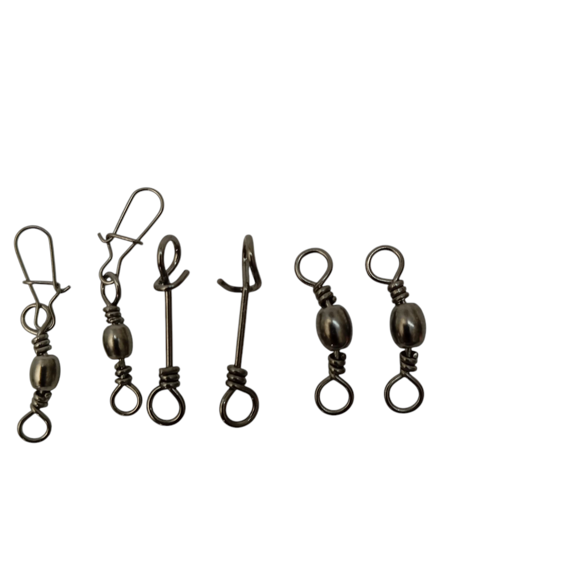 5) 5 pcs each fishing swivel, fishing snap, fishing snap and swivel (sizes and models based on availability)