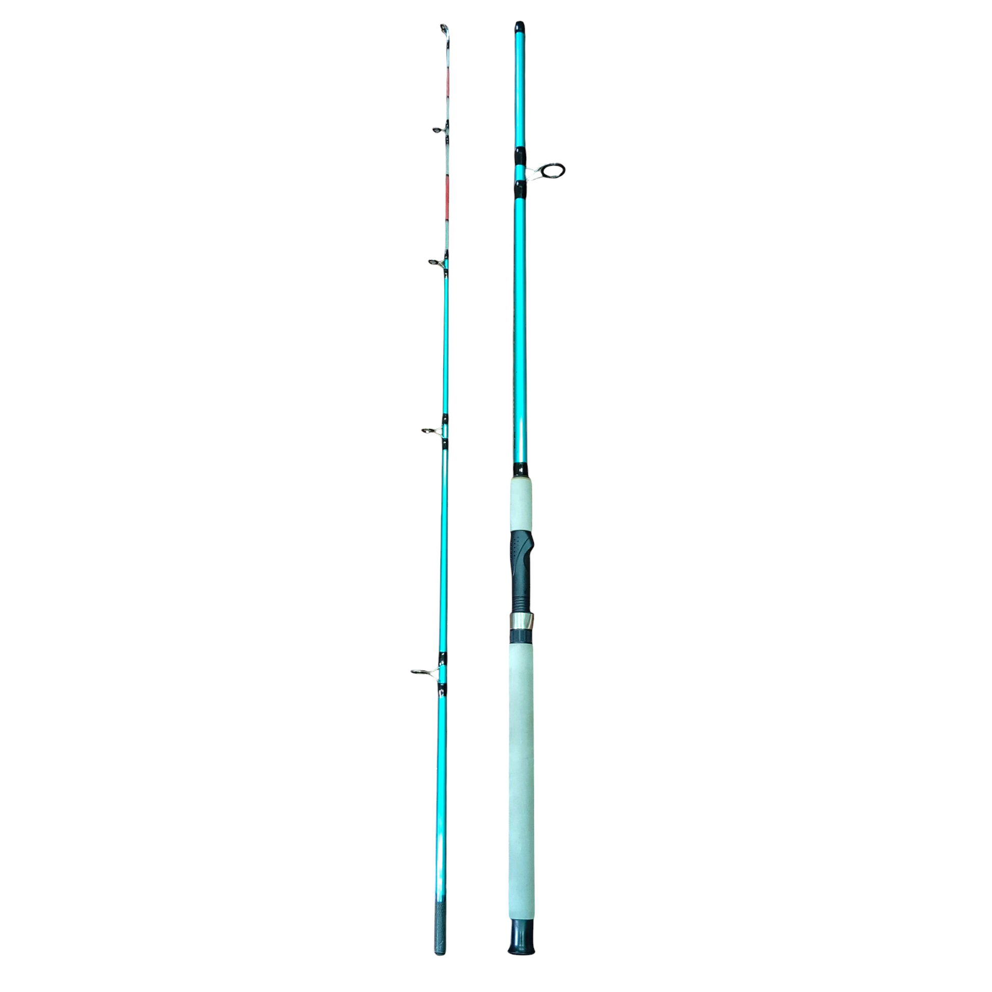 1.Fishers King Rainbow 7ft Fiber Glass Spinning Fishing Rod is a versatile and portable fishing rod designed for both saltwater and freshwater fishing. Crafted with high-quality carbon fiber, this rod offers exceptional strength, sensitivity, and durability.
